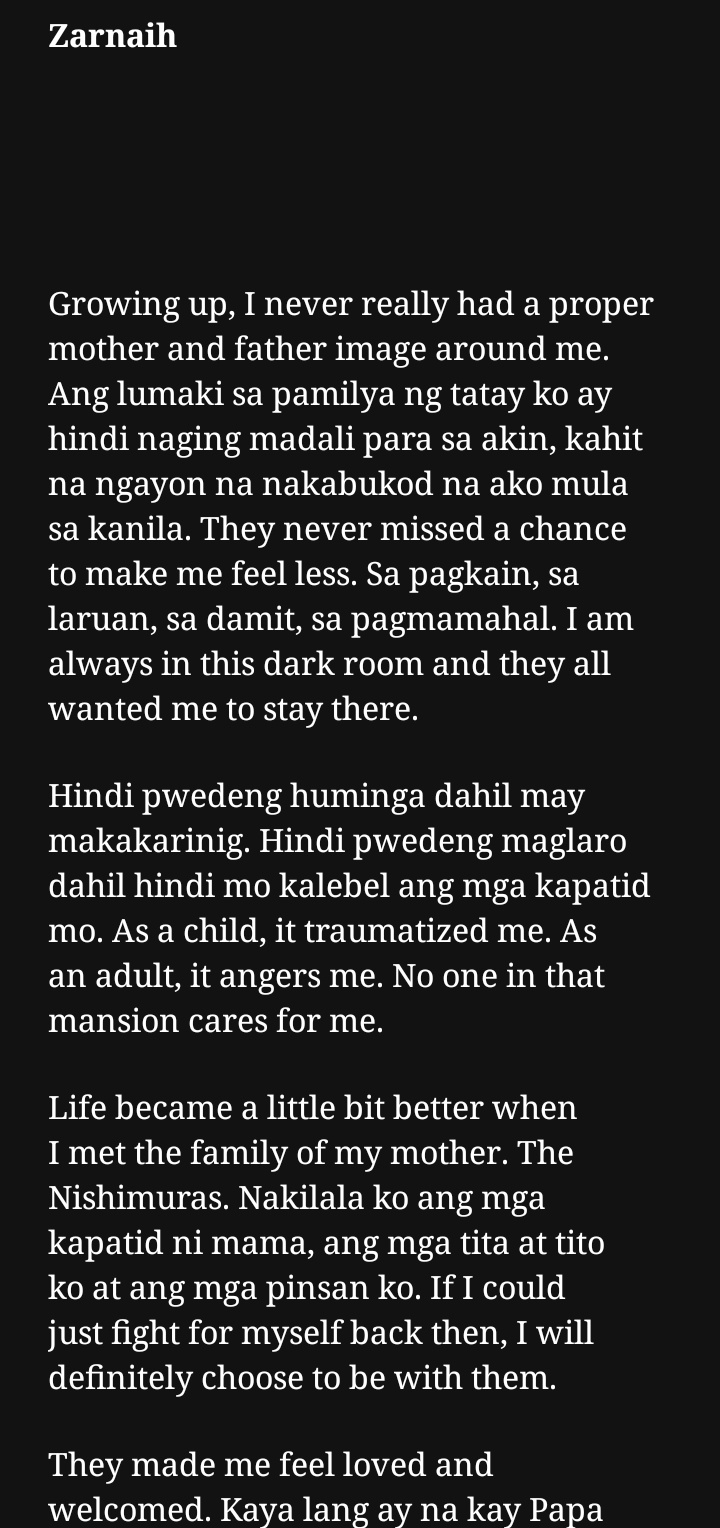 At kapag siya ay nilalaman upang i-play sa sahig ang kanyang mga laruan ito ay madalas na nag-iisa. Saka lang niya napansin ang anak na si dx na panay tulo ng luha ganon din si DL na sigaw pa don ng sigaw. Ako ay isang mapagmahal na anak may takot at may respeto sa aking mga magulang.